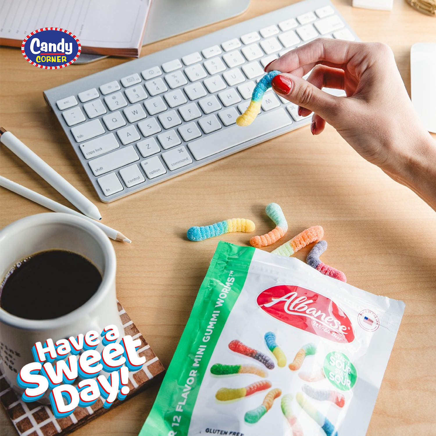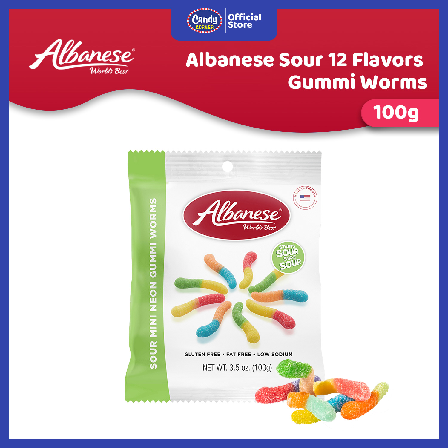 Sour squiggles await with Albanese Sour 12 Flavor Mini Gummi Worms! 🐛🍬