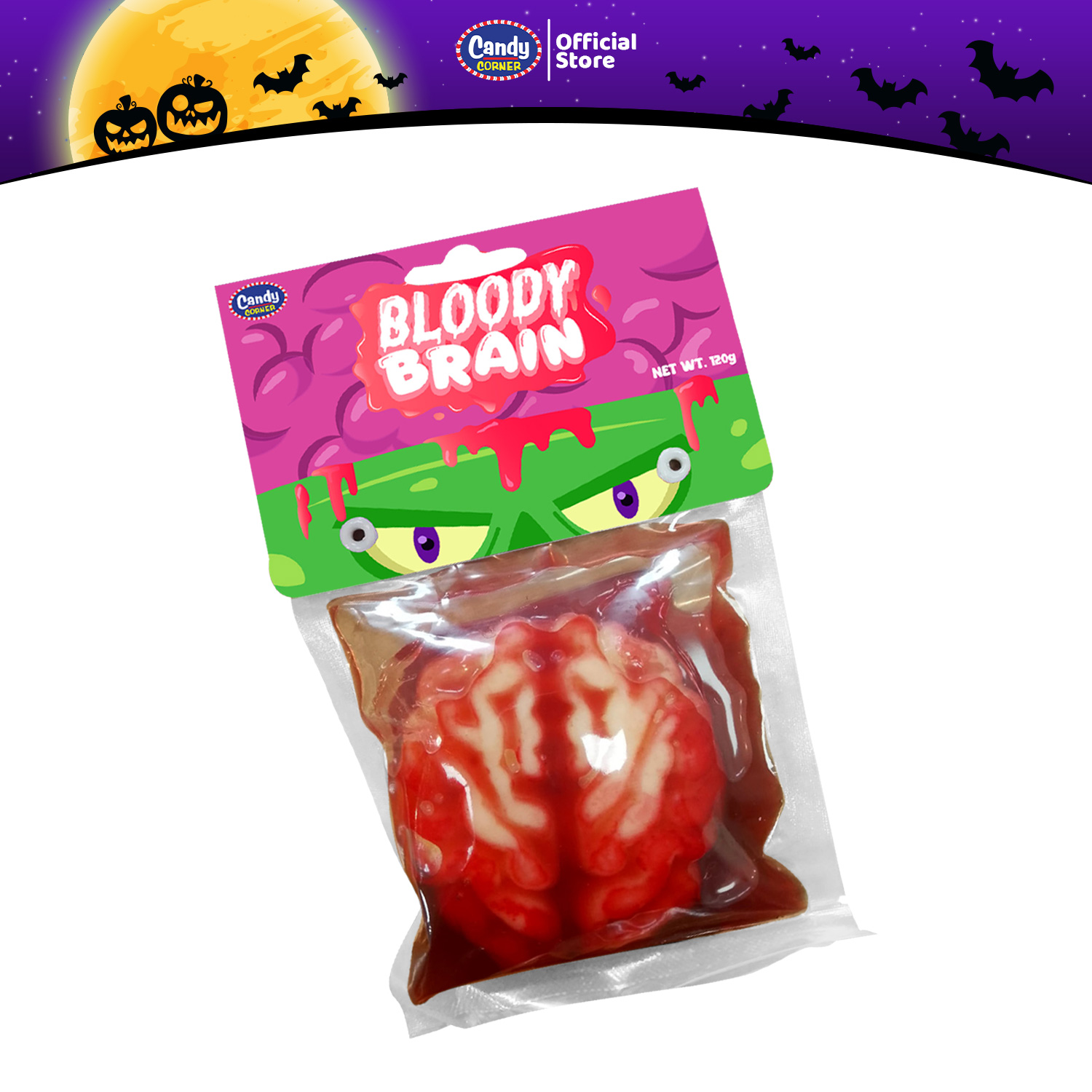 Buy 20pcs Candy Corner Halloween Gummy Brain with Candy Gel and get FREE 20pcs Fini Melon Bubble Gum 5g!