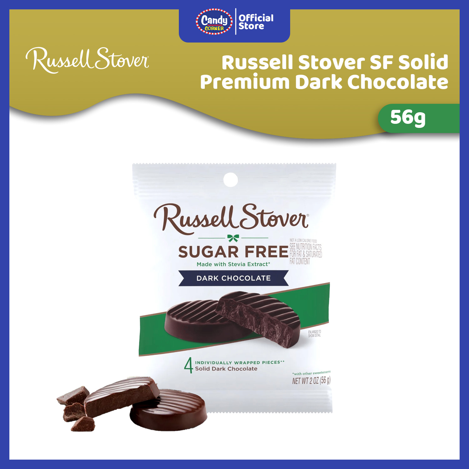 Russell Stover Sugarfree Dark Chocolate 56g