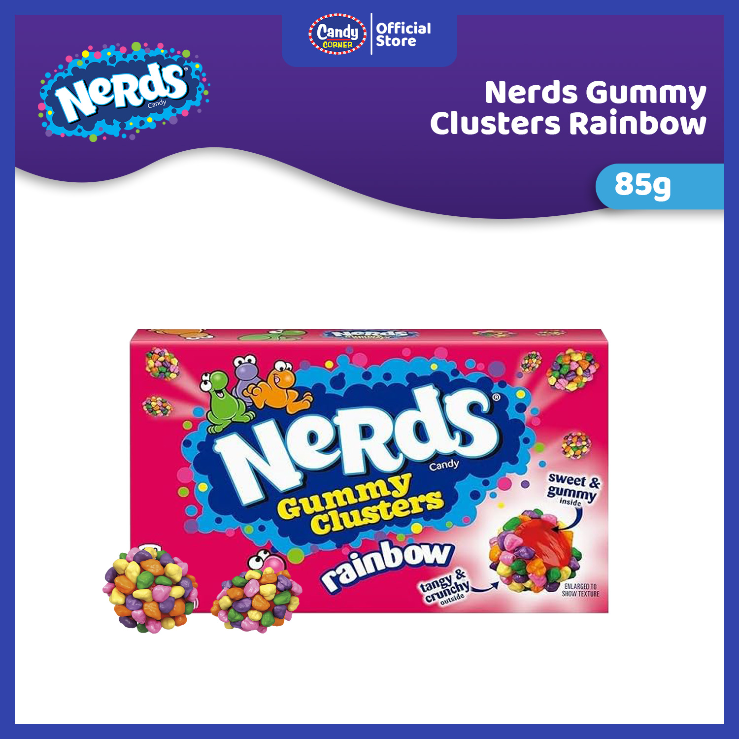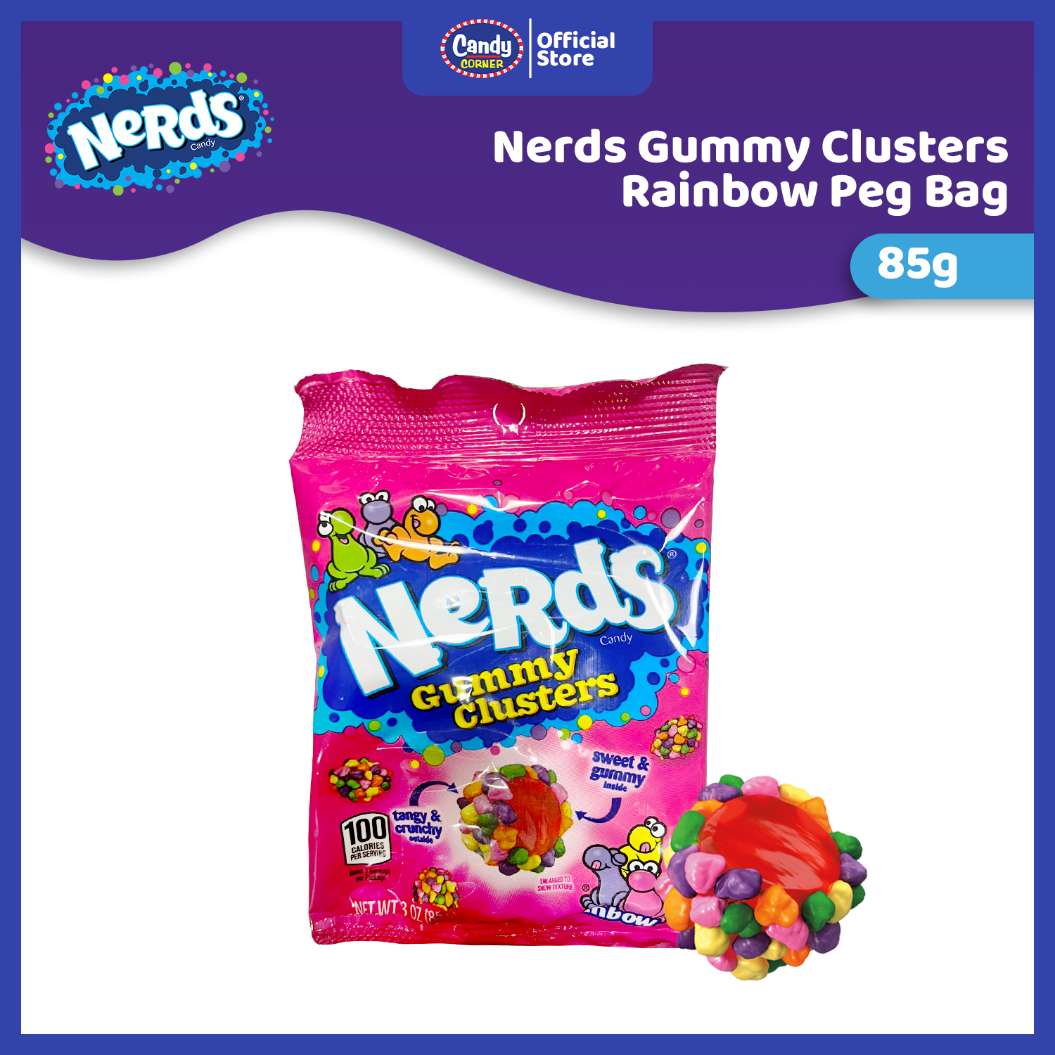 This colorful candy combines tangy Nerds with a soft gummy center for a mouthwatering explosion of flavors. Dive into a flavor party thatβs as fun as it is delicious! π¬π